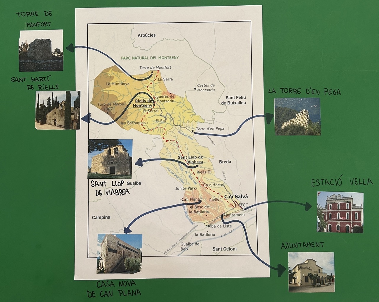 Amb el projecte de descoberta de l’entorn del seu poble els nens i nenes de primer han estudiat alguns elements patrimonials del seu municipi. També han descobert el GR-83 (Camí del Nord o del Canigó) que enllaça Mataró amb Prades, a la Catalunya Nord. Aquest camí travessa tot el municipi venint del Montnegre direcció a Arbúcies i els i les alumnes de primer n’han anat a descobrir algunes parts del seu recorregut. En tot aquest trajecte també hem tingut l’ajuda de la Rivi, la Vírbola de Riells!