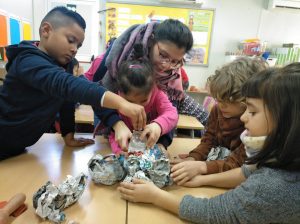 Dins del projecte del Planeta Terra que estem treballant a l’aula, teníem molta curiositat per saber coses sobre els volcans: quants n’hi ha, on són, com són,… Després d’investigar i respondre alguns dels nostres dubtes, vam decidir de fer un volcà a l’aula. Ens vam posar en grups i en vam fer un per grup.