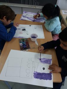 Avui hem observat aquest quadre i hem parlat de què són els gratacels. Hem observat diferents gratacels d’arreu del món a la pantalla digital i per últim han fet 2 creacions: