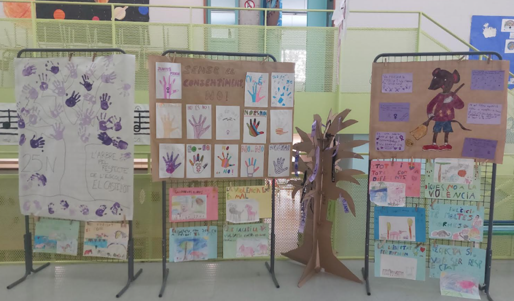 Durant la setmana passada, cada classe va estar treballant per erradicar la violència i avui ha exposat els seus treballs i les seves reflexions.