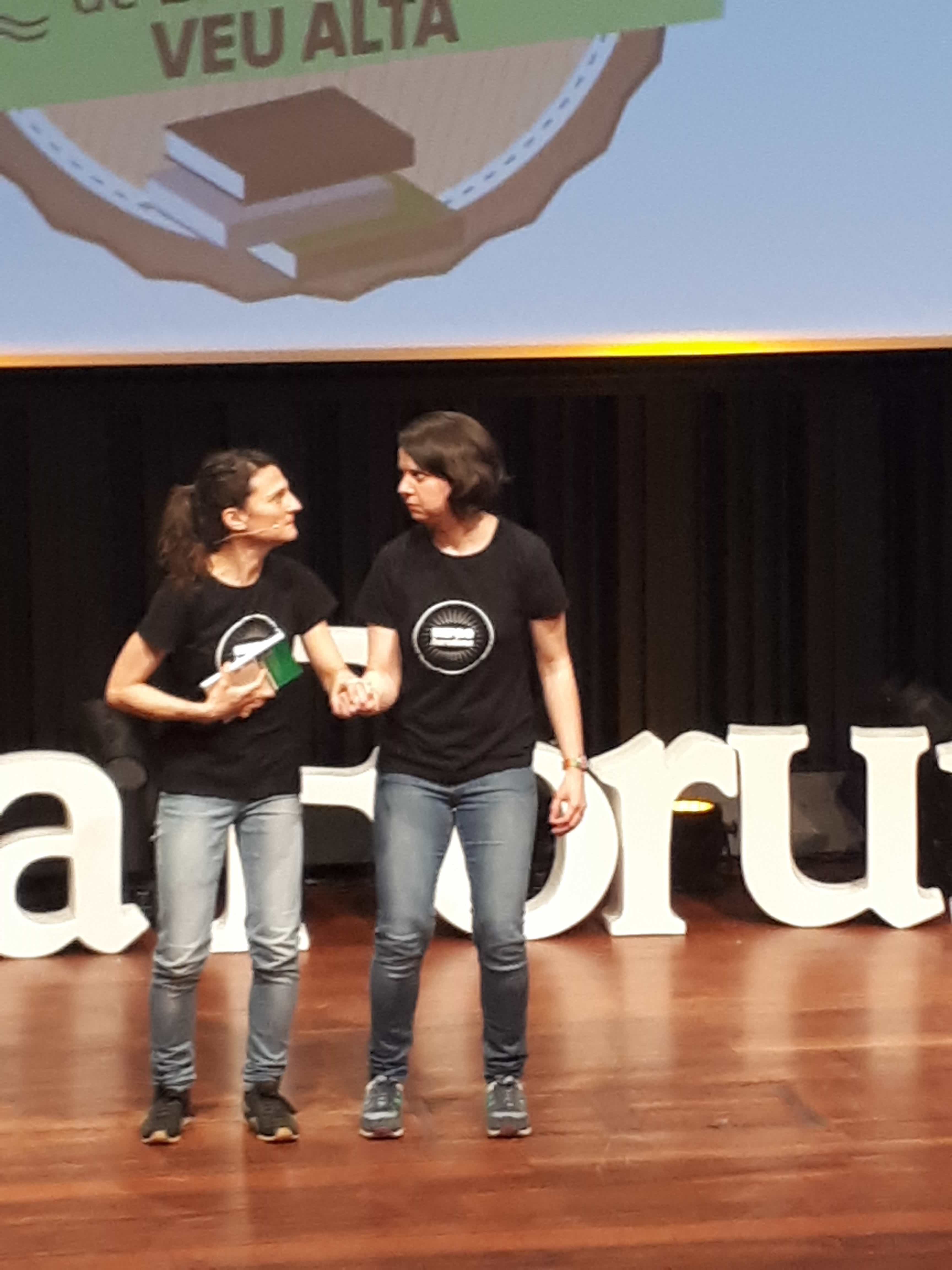 Amb aquest grup ha acabat la fase de lectura. El jurat s’ha retirat a deliberar i mentrestant dues actrius de la companyia “Impro Barcelona” ens han fet riure de valent, improvisant escenes a partir de fragments de llibres triats totalment a l’atzar. Eren companyes de la presentadora de l’acte. I ho feien de meravella. Aquí les teniu en acció: