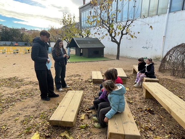 Els alumnes de 1r de Batxillerat de l’IES Manolo Hugué visiten l’Escola El Farell per iniciar el projecte d’ocells de jardins