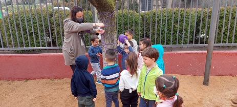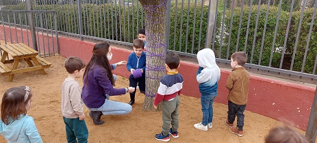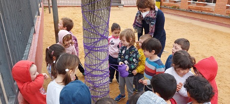 - Comencem a decorar alguns arbres dels nostres patis de color lila: