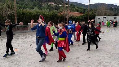 A la tarda hem fet una desfilada de disfresses adaptada a la Covid19. Ens hem repartit pels diferents patis de l’escola per cicles. Cada classe ha desfilat ballant davant de la resta dels companys/es. Finalment les mestres han fet l’entrega d’un diploma amb diferents categories a cada classe, per a la comparsa: amb més ritme, la de les disfresses més originals, la més divertida, la més creativa, la més coordinada i la més temàtica.