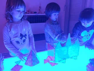 Un cop acabada la segona volta, hem fet una setmana d’espais de lliure circulació, on els infants cada tarda podien triar quin espai anar i canviar tantes vegades com volien. És a dir, hem obert aules d’I3 i I4, el vestíbul, l’aula petita del calidoscopi i la de llum i ombres, i els petits/es podien circular lliurement, gaudint de les diferents propostes i materials que les mestres els havíem preparat.
