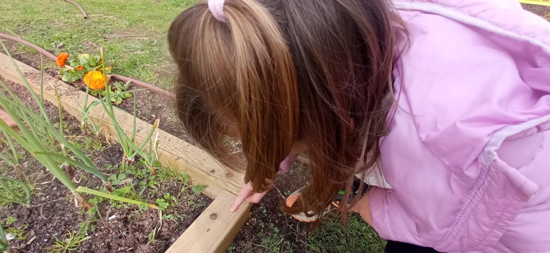 El primer que vam fer va ser observar els insectes que visiten l’hort i i si aquests poden ajudar o perjudicar la planta. També vam passar el rasclet, vam treure les males herbes i finalment vam plantar enciams amb les nostres pròpies mans.