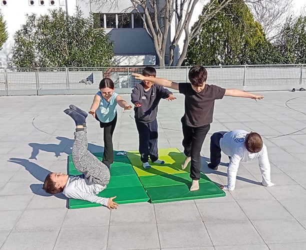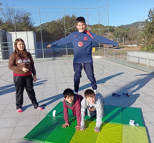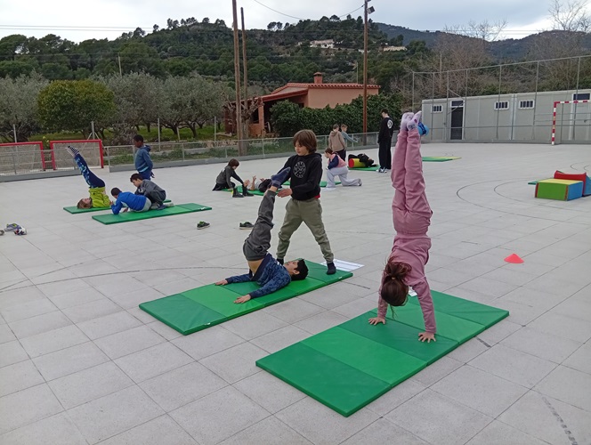 Aquest 2n trimestre a les sessions d’educació física, mitjançant el treball cooperatiu, hem practicat nous jocs i esports, hem descobert el món del circ i hem mogut el nostre cos practicant salts, acrobàcies, diferents girs corporals, postures d’equilibri, activitats d’expressió corporal i ritme.
