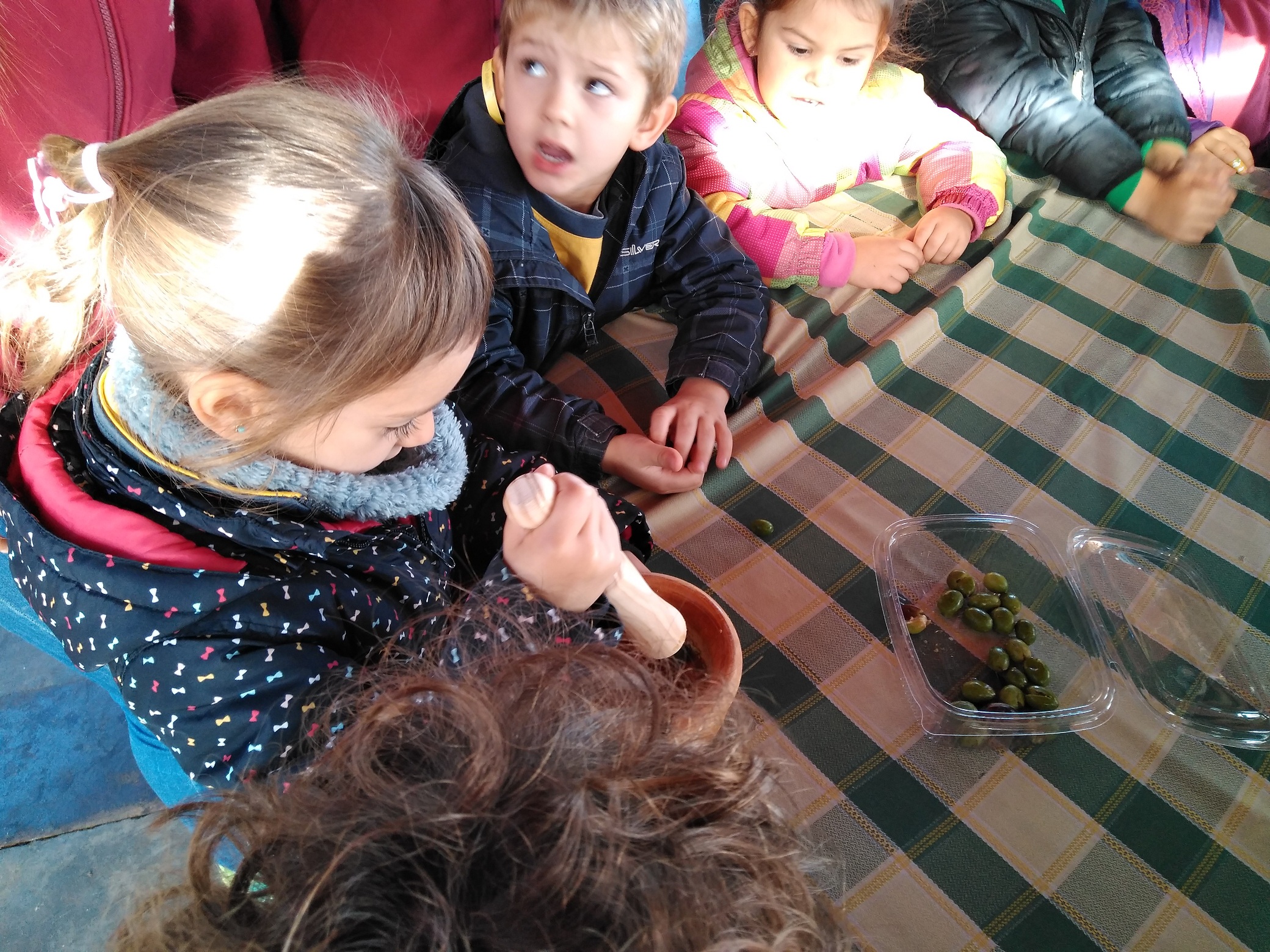 Vam recollir olives a les oliveres, les vam rentar, vam veure com es trituraven amb una màquina que la anomenaven “JUANITA!!”. La pasta que en va sortir vam veure com l’escalfaven al foc amb una paella, com després la posaven en uns COFINS i com ho aixafaven tot en una premsadora.