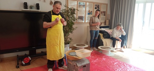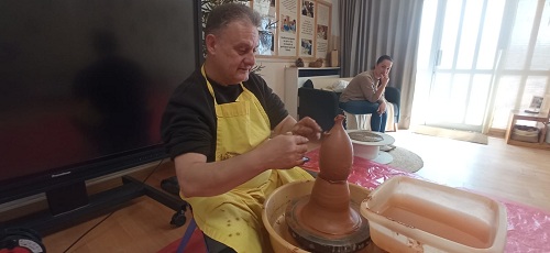 Però el millor de tot… ha estat posar-nos a treballar! Hem fet servir el torn i el fang com autèntics artistes. Al principi no era gens fàcil —el fang s’escapava, girava i ens feia alguna trapelleria— però a poc a poc, amb concentració, paciència i amb l’ajuda d’en Jose, hem aconseguit donar-li forma a la peça de fang en el torn. Per un dia, ens hem convertit en autèntics terrissaires!
