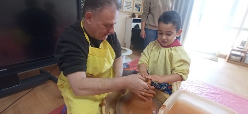 Aquesta setmana, els Pollets hem tingut la sort de viure una experiència molt especial a l’aula. Ens ha visitat l’avi Jose, terrissaire i avi de l’Hugo, que ens ha obert les portes del seu ofici. Amb les seves explicacions hem descobert com, a partir del fang i amb molta traça i paciència, es poden crear peces úniques amb les pròpies mans. Ens ha explicat com, amb les mans, paciència i una mica de màgia (bé… i molta pràctica!) el fang es pot transformar en peces ben boniques.