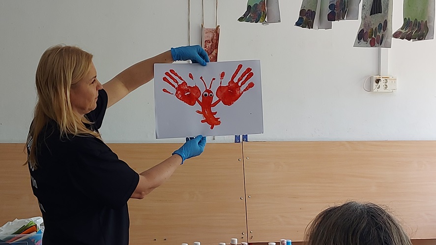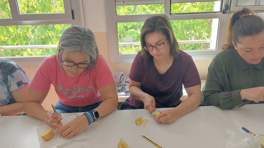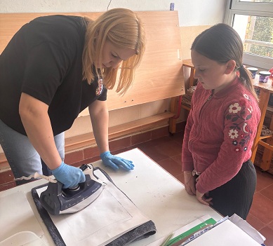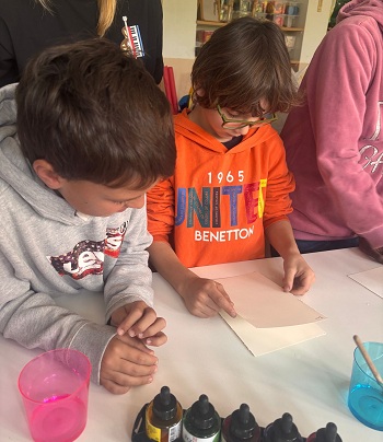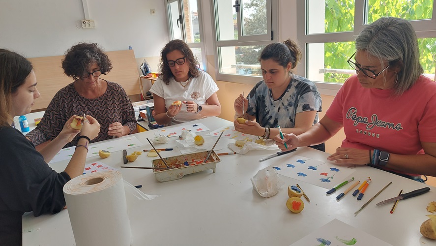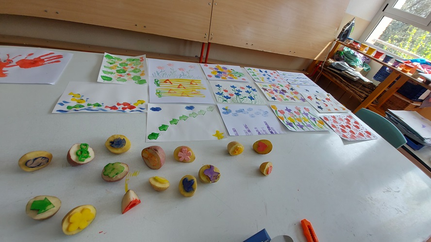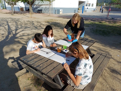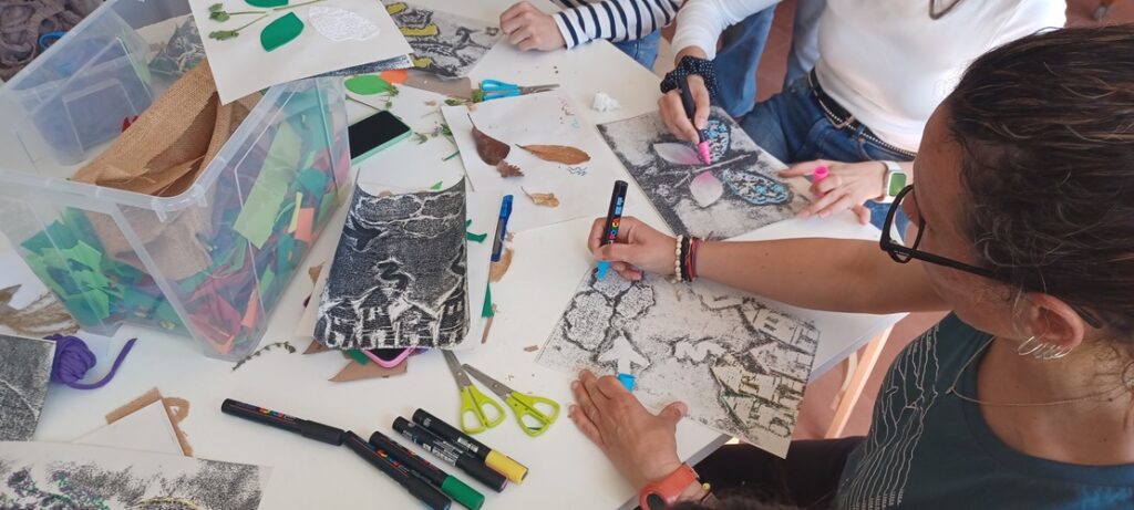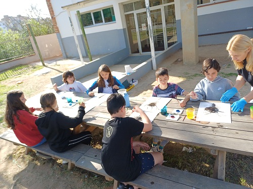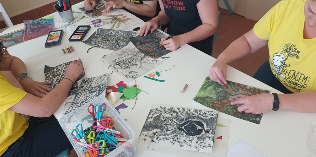 A més també ens han fet dues sessions pels mestres, on ens han mostrat més tècniques artístiques i on les hem experimentat per nosaltres mateixos: l’estampació amb motlles fets amb patates, el calcogravat i l’estampació de les pròpies mans per fer produccions d’allò més originals.