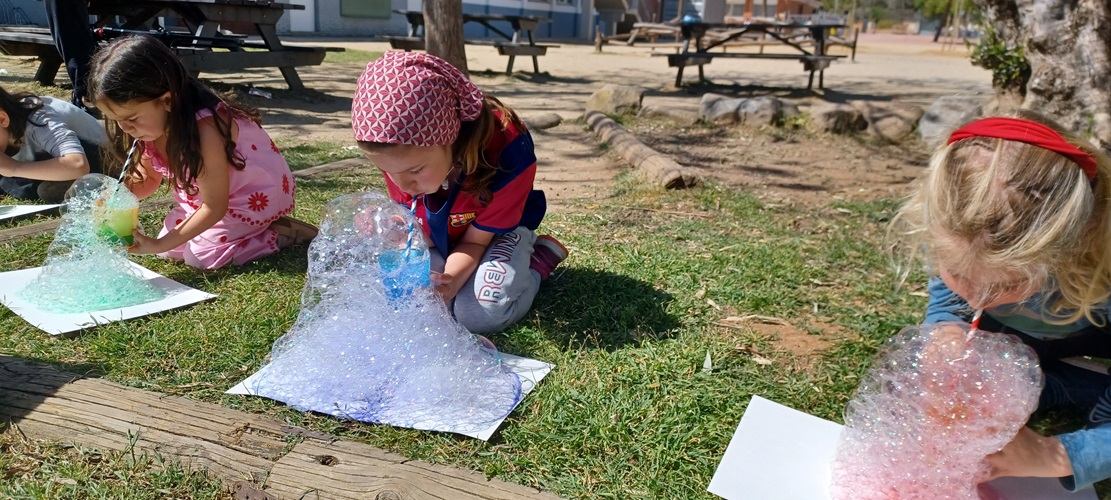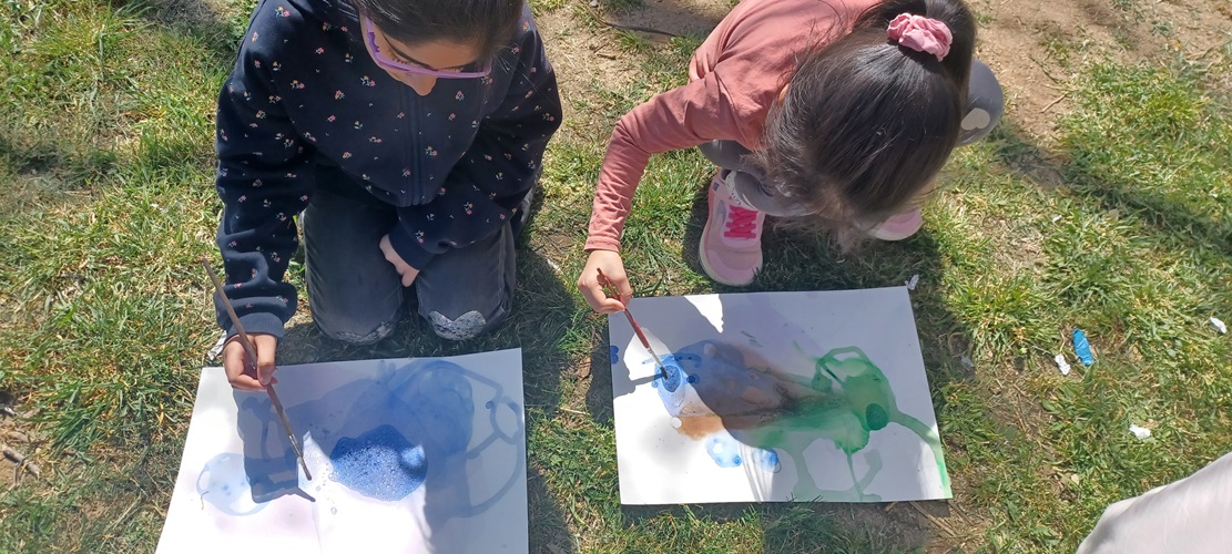 Amb aigua, sabó i aquarel·les els alumnes de 2n han fet una composició artística d’allò més divertida.