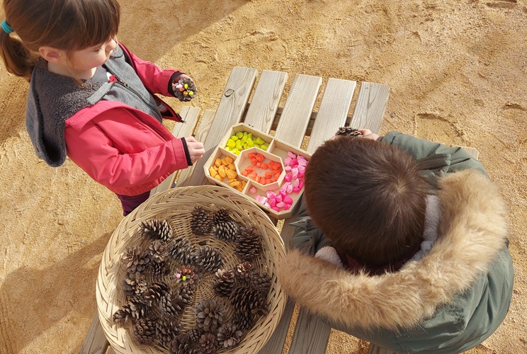 Vam experimentar amb la llimona i la col, vam decorar pinyes amb boletes de plastilina tot treballant la motricitat fina, vam fer un memory de fulles naturals, vam cuidar el pati netejant i regant, vam fer caminets amb pedretes i materials diversos…