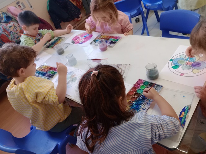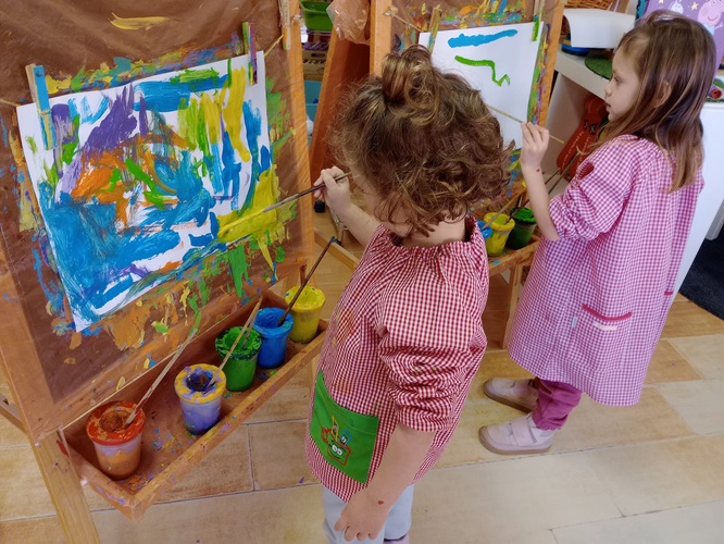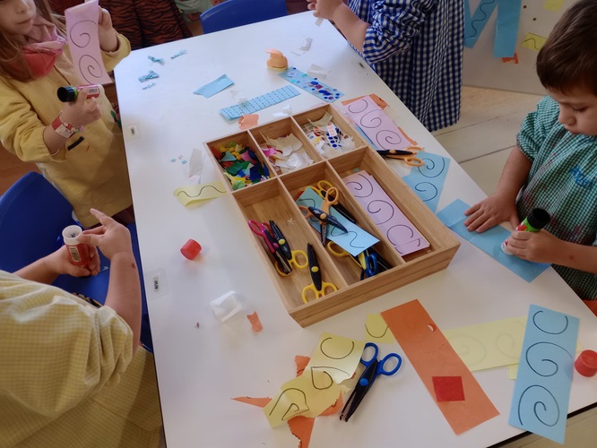 Vam pintar amb pintura amb els cavallets, vam retallar diverses sanefes, vam pintar amb aquarel·les, vam fer un collage col·laboratiu…