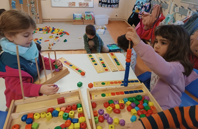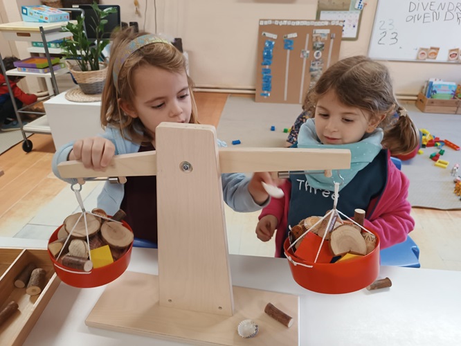 Vam jugar a programar la Beebot, vam jugar a diferents jocs de taula, a construccions, vam experimentar amb les balances…