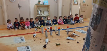 Finalment el van recollir tot creant una gran bola i van jugar amb ella (passant-la, xutant-la, llençant-la…).