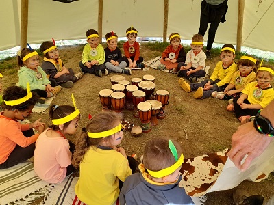 Vam tenir l’oportunitat d’entrar a un tipi, què és la típica casa d’ells. Allà, de ben a prop vam poder veure com estava format per dins un tipi  i com els construïen. També, amb la nostra petita tribu que vam crear allà amb els monitors, ens vam pintar com els indis feien i vam fer rituals típics, acompanyats de cants i danses, amb instruments inclosos! Va ser una experiència d’allò més divertida i diferent, i vam poder viatjar en el temps. Vam conèixer moltes altres coses més del indis: la seva vestimenta, les plantes que utilitzaven per curar ferides, que els tipis estaven fets amb pell de bisó, que els indis eren molt amics de les aranyes i aquestes els van ensenyar a fer els atrapa-somnis (que hi havien molts dins del tipi)…