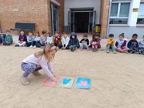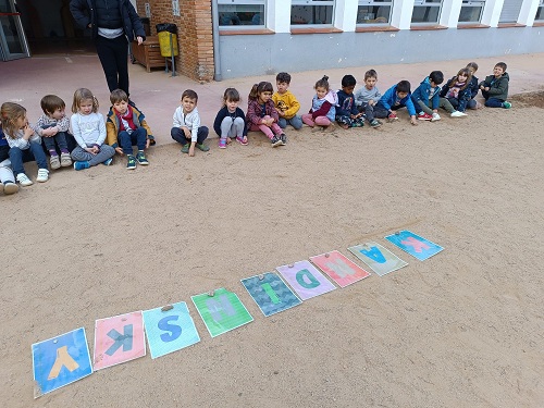 Després de rebre un missatge secret a l’aula teníem la missió d’anar al pati a buscar les lletres que formarien el nom de l’artista i així descobrir el seu art.