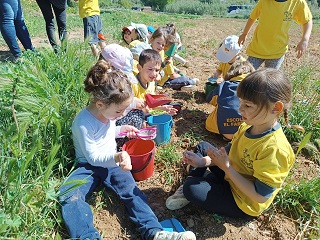 També hem anat al camp a buscar sorra fina amb les galledes, pales i coladors. Hem descobert que  barrejant aquesta sorra amb aigua i argila obtenim la barreja perfecte per fer ceràmica. Hem fet unes boletes tots junts.  Ha estat un dia molt bonic on hem gaudit molt tots plegats!