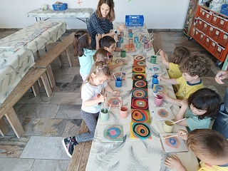 Els nens i nenes d’I4 hem anat d’excursió a Mas Fabrera a l’Ametlla del Vallès a fer una activitat relacionada amb l’artista que estem descobrint aquests dies: KANDINSKY. Hem pintat una rajola de ceràmica, fent cercles de colors, tal i com havia fet aquest pintor. Aquestes rajoles les posaran  a un forn i d’aquí uns dies ens les faran arribar a l’escola.