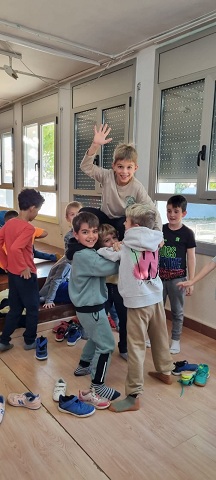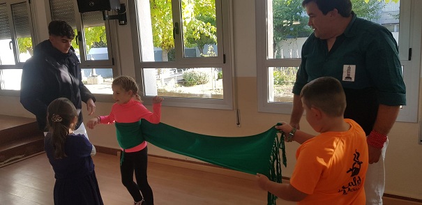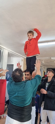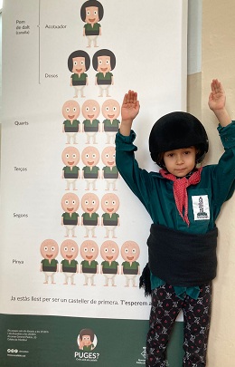 Tot va començar amb la visita del Dídac, un dels castellers que va venir a presentar el projecte i tot el material que tindríem al nostre abast per convertir-nos en un més de la seva colla. Hi havia un dossier de treball, la vestimenta que ells/es utilitzen, un joc de fusta per practicar a fer castells, llibres amb fotografies reals, contes sobre castellers, un llibre de mandales…