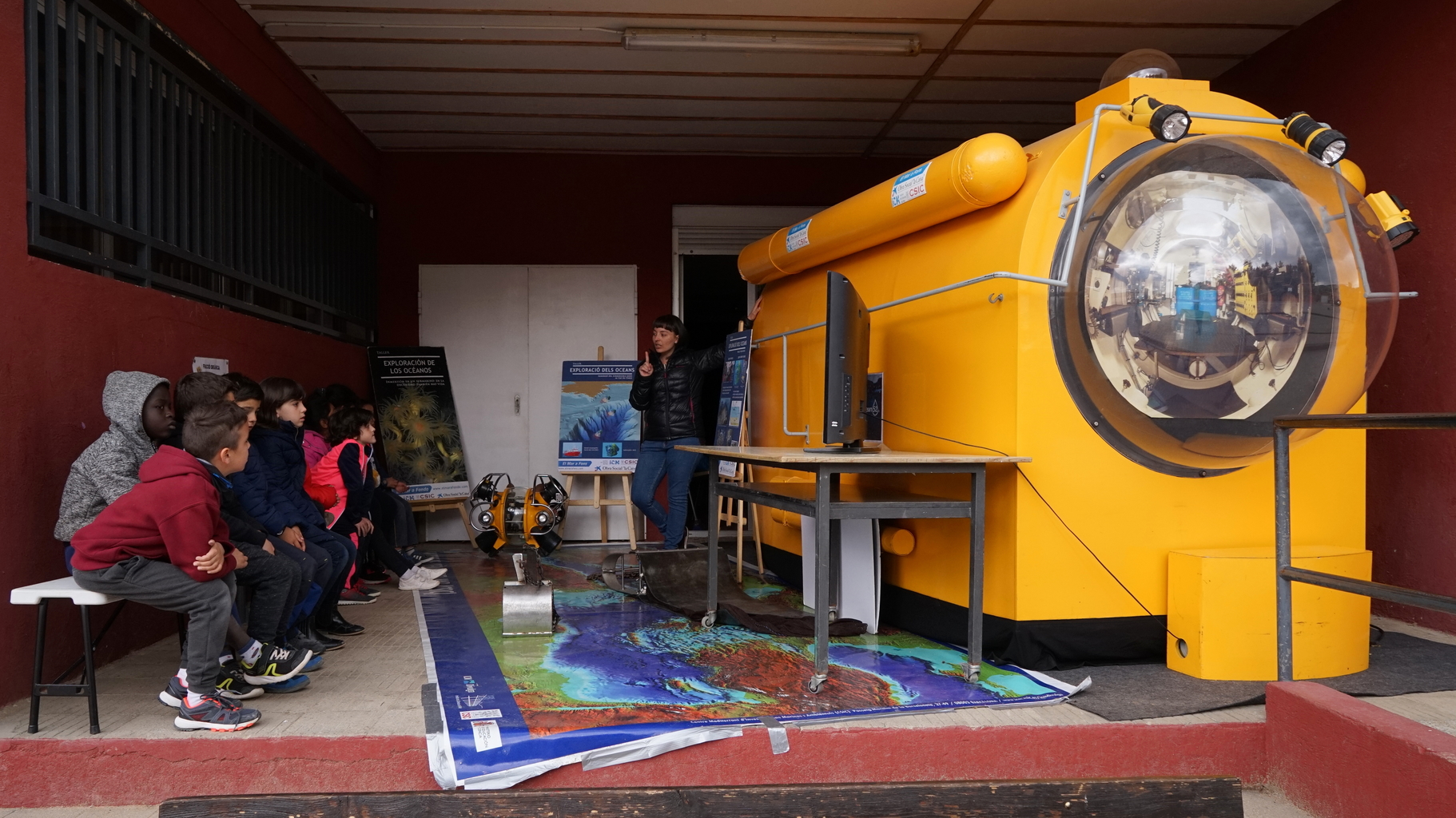 I no ens podem deixar la gran sorpresa d’aquest any!! Vam tenir un submarí a l’escola!!! Gràcies a l’esforç del Carles i l’Eva, tots els alumnes de l’escola han passat a veure i conèixer el submarí JAGO. Gràcies a la tele que hi havia a l’interior, hem pogut comprovar tot el que van sentir i veure els científics que van utilitzar-lo per veure el fons marí del Cap de creus.