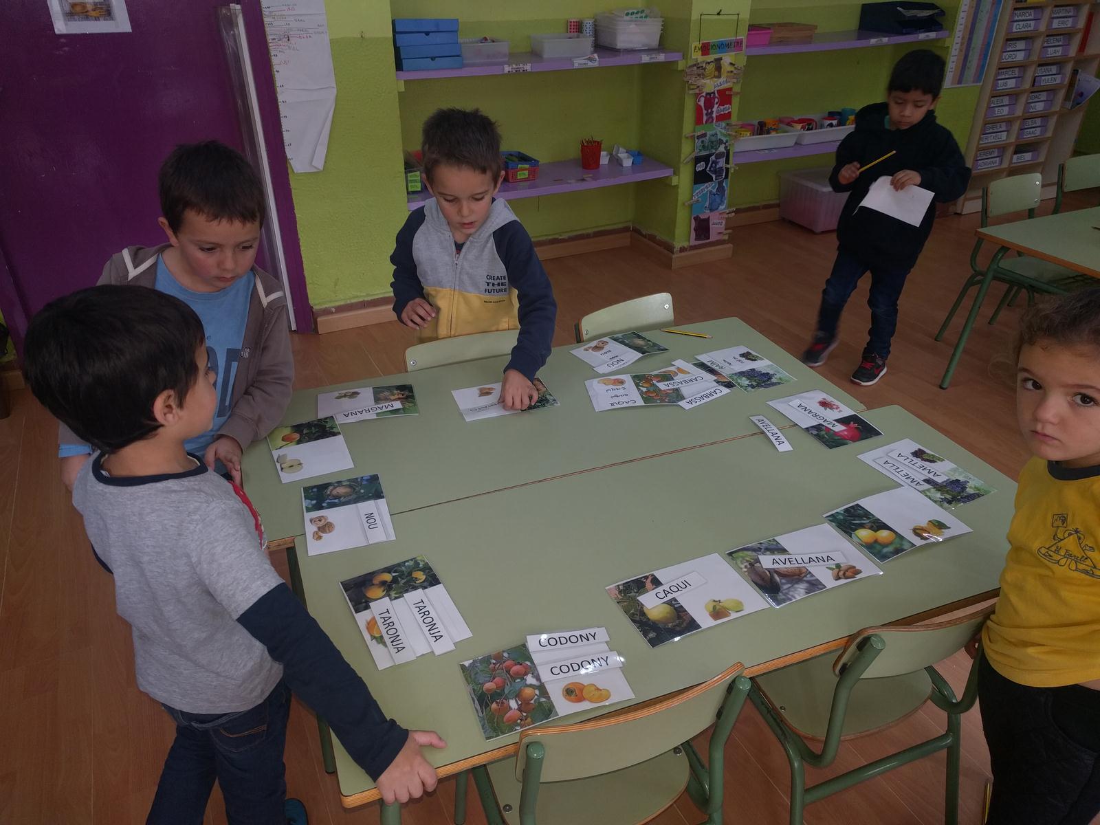 També vam veure quins sons formaven cada paraula dels fruits de la tardor, si eren llargues o curtes, els vam escriure a la pissarra, vam jugar a un joc de relacionar paraules amb imatges o paraules amb els fruits que havíem portat…