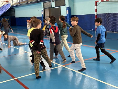 A les darreres sessions d’Educació Física, hem treballat l’expressió corporal amb el fil conductor del projecte de medi, la Prehistòria. Amb imatges d’elements i animals prehistòrics hem construït un dau dansaire. Cada imatge al darrere tenia les qualitats del moviment que havien de representar, acompanyats amb les músiques adequades. El punt final d’aquestes sessions, va ser la creació en grup, d’una coreografia on quedessin plasmats els sis moviments. La coreografia havia de complir alguns requisits, ocupar tot l’espai i fer canvis de direcció on es veiessin els canvis de moviments, intensitat, velocitat… Les coreografies han estat tot un èxit!