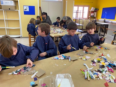 També hem fet un taller artístic amb materials diversos, cartrons, robes, pintura, suro…un colom picassià, símbol de la pau, ens ha quedat xulíssim.