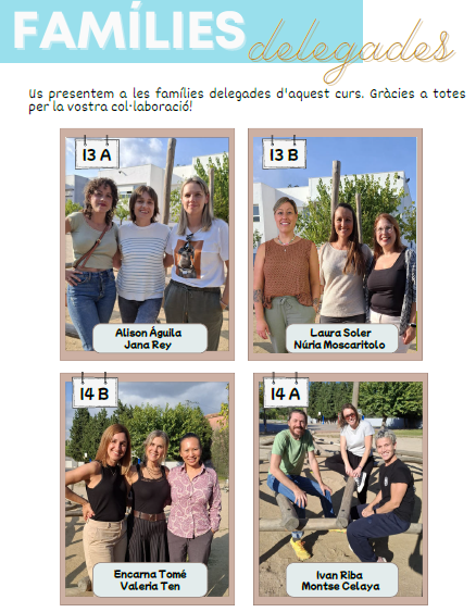 La col·laboració i la participació de les famílies de l’alumnat és imprescindible per assolir els millors resultats educatius, personals i socials possibles. La figura de la família com a delegat/da de classe serveix de nexe entre el tutor/a i els pares i mares de la classe i també entre les famílies i el centre.