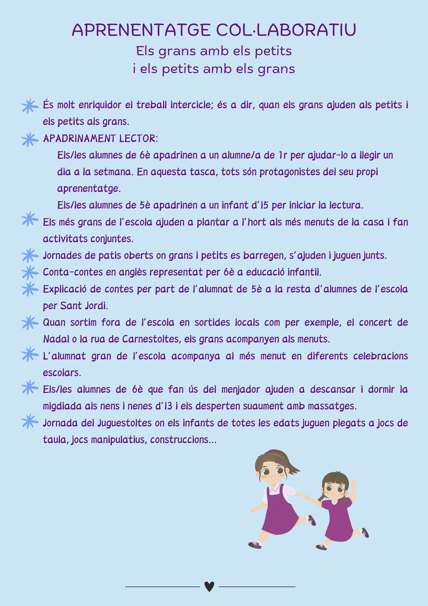 A la nostra escola portem a terme diversos PROJECTES PEDAGÒGICS que ens identifiquen i que entre tots ens fan únics. Aquests són: