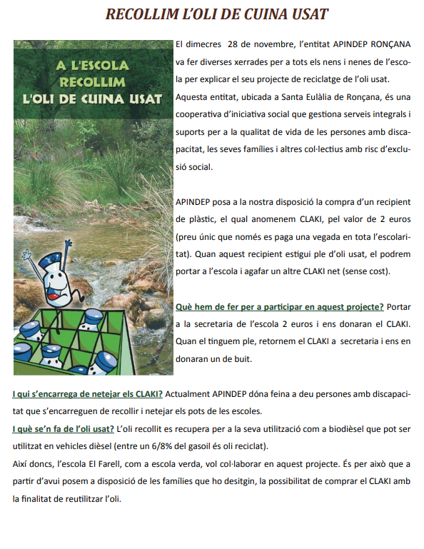 Recollim l’oli de cuina usat