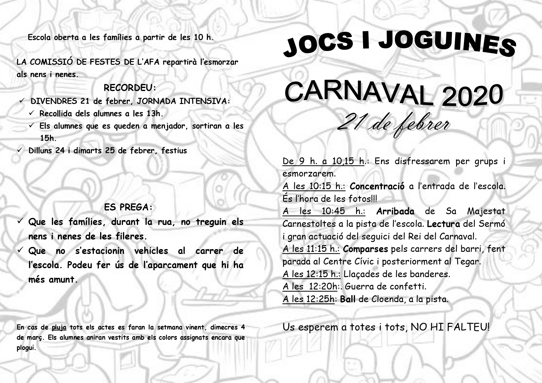 Carta d'inici de curs i calendari