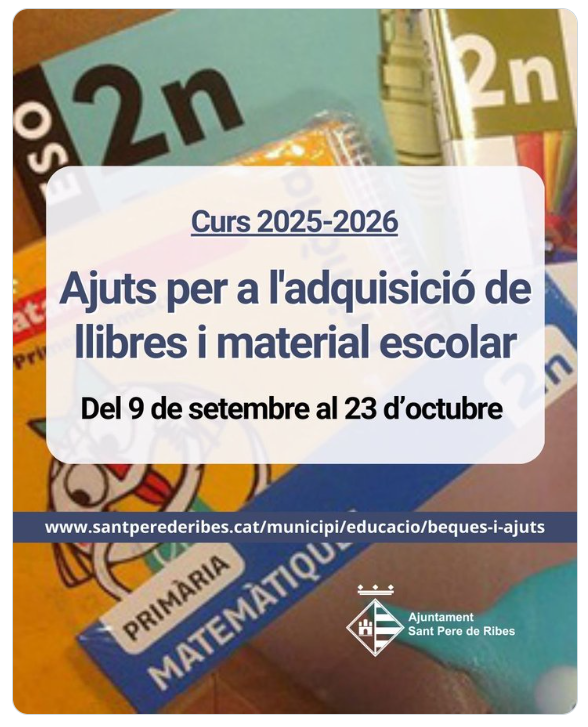 Trobareu tota la informació a la pàgina web de l’Ajuntament. Ajuts llibres i material escolar, curs 2025-2026 – Sant Pere de Ribes