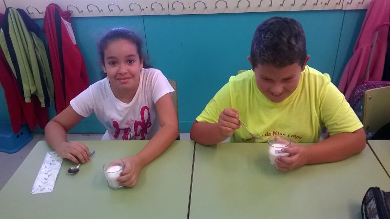 A classe de medi natural hem fet iogurt, sembla màgia, però si barreges llet, sucre, una mica de iogurt i ho poses en un lloc calent (nosaltres hem fet servir una capsa de folis amb una bombeta) i ho deixes unes hores, tota la llet es converteix en iogurt. Si vols saber més, només cal que ens ho facis saber, t’explicarem el procés que vam fer pas a pas i l’explicació científica.