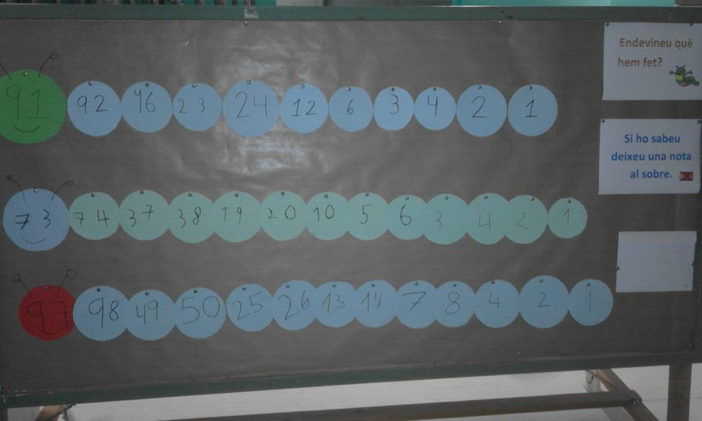 Els nens i nenes de quart hem preparat una activitat a l’entrada de l’escola de matemàtiques. Volem que endevineu què hem fet. Si els pares, mares, familiars… voleu participar deixeu els vostres comentaris. Moltes gràcies de part dels alumnes de quart!!!