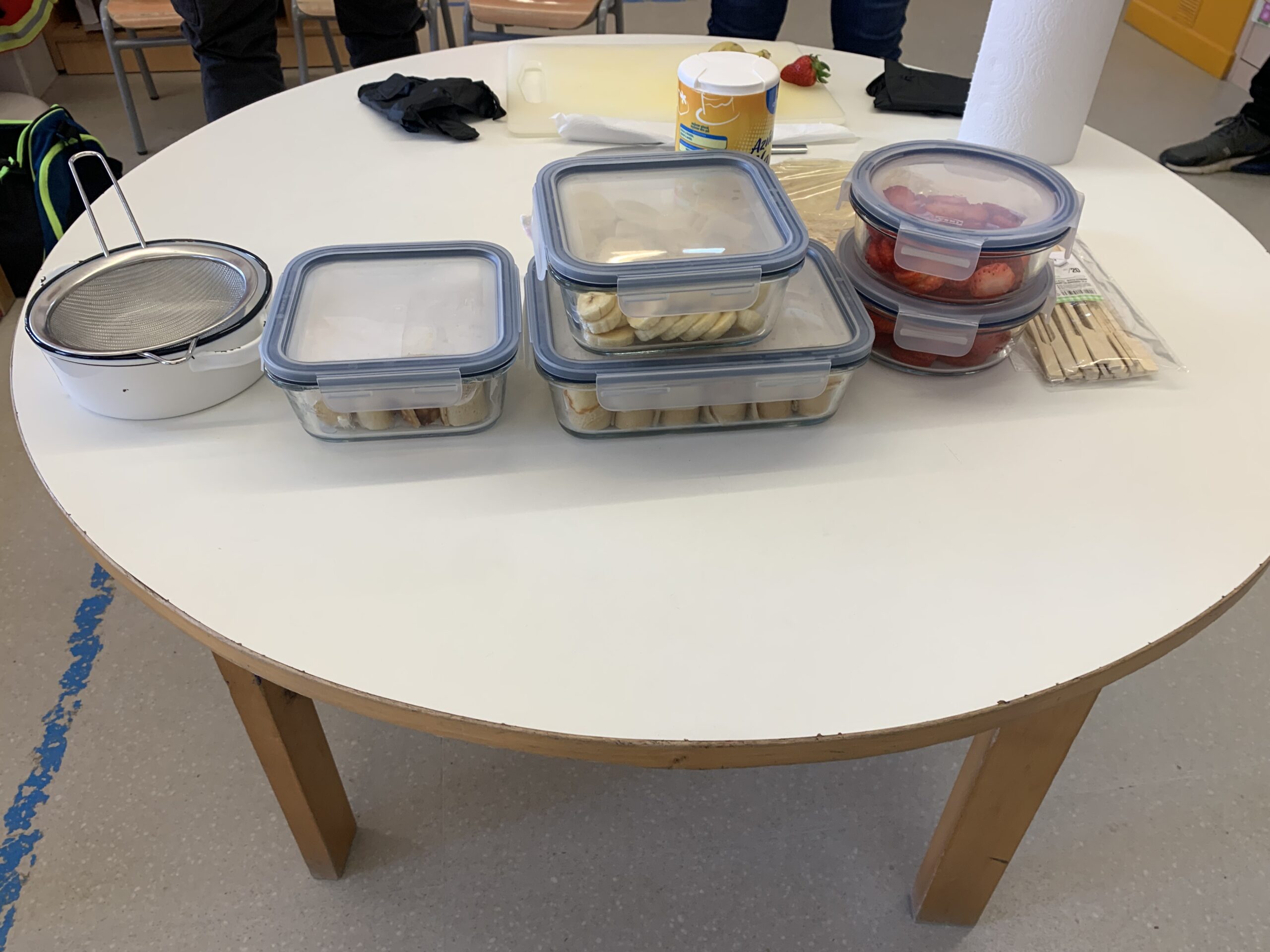 Hem continuat l’activitat de tarda en família amb els pares de l’Èric Pané, el Jordi i l’Eva que ens van ensenyar a fer una broqueta de crep de formatge, plàtan i maduixes.