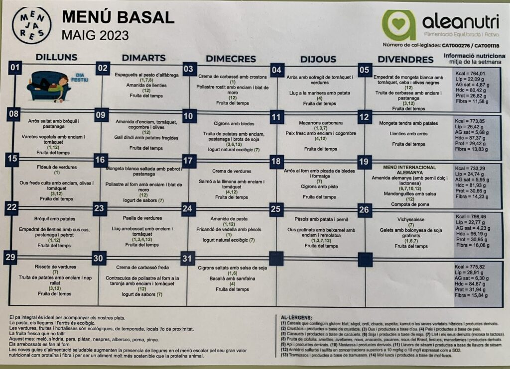 Hola famílies! Mireu el menú especial d’avui. Els infants han estat molts contents i els hi ha agradat molt!