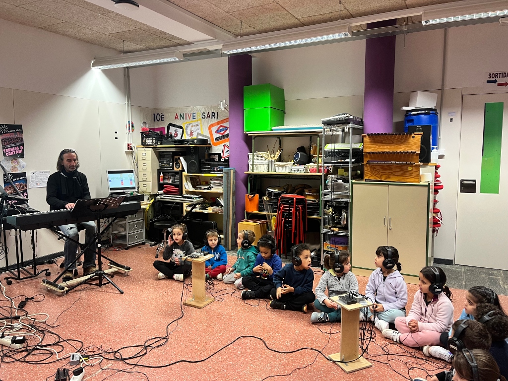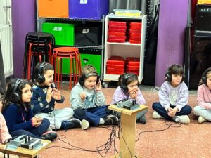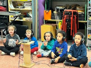 Els infants  d’I5  han  preparat amb molta il·lusió una cançó que han assajat durant molts dies. Perquè tot surti molt bé hem pujat a enregistrar-la  com uns autèntics artistes  a l’estudi de gravació.