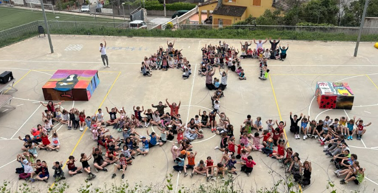 A la tarda tots els alumnes des de I3 fins a 6è vam anar al pati perquè ens esperava un munt de diversió! Vam fer una fotografia del pati perquè ens vam seure creant unes paraules: ART i ESPORT. Després, la Mireia i la Sílvia van pujar a l’escenari per animar la festa i que tothom pugui ballar amb elles. Primer vam fer un escalfament i després ja va començar la marxa, amb mestres inclosos!
