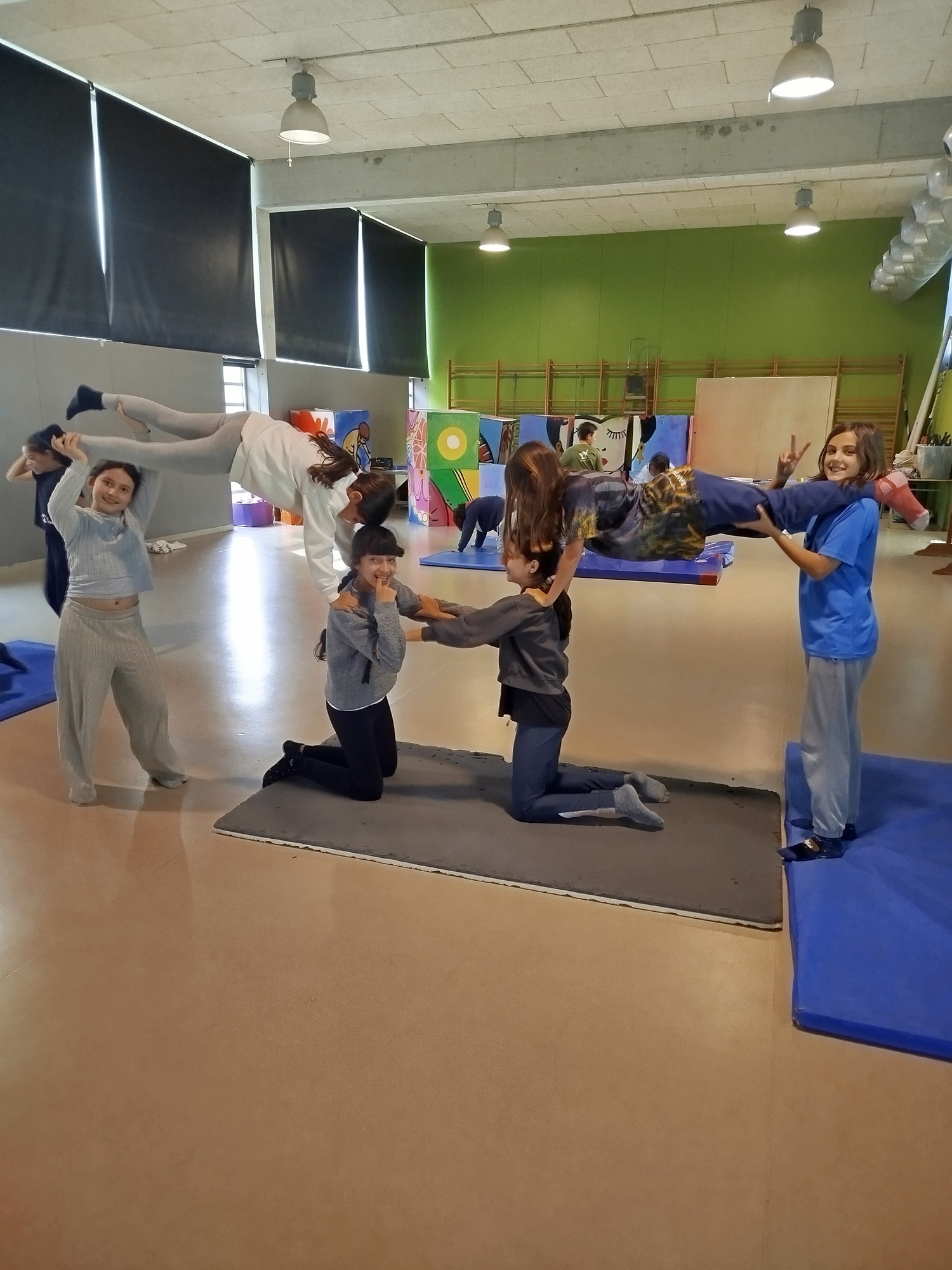Aquestes últimes tres sessions d’Educació Física a l’escola El Solell han estat una passada! Els grups de 5è i 6è hem deixat de banda la pilota per un repte molt més difícil: l’acroesport.