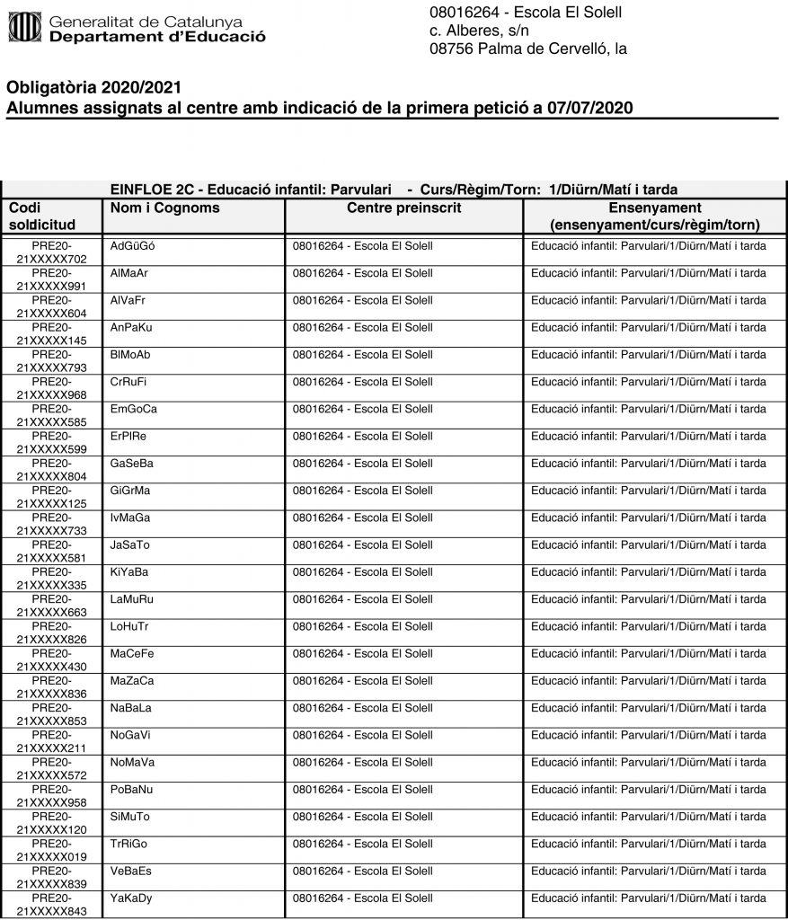 Publicació del llistat d’alumnes assignats al centre – Curs 2020/2021Per admin / 7 de juliol de 2020 / Escola General Organització i funcionament Portada
