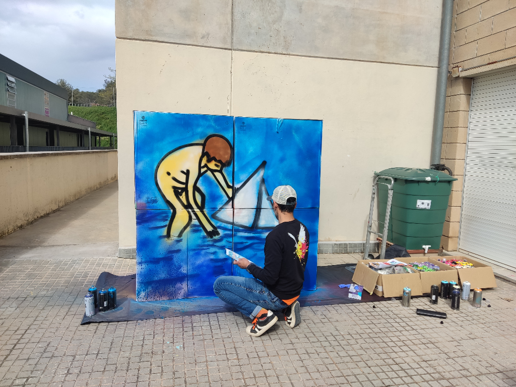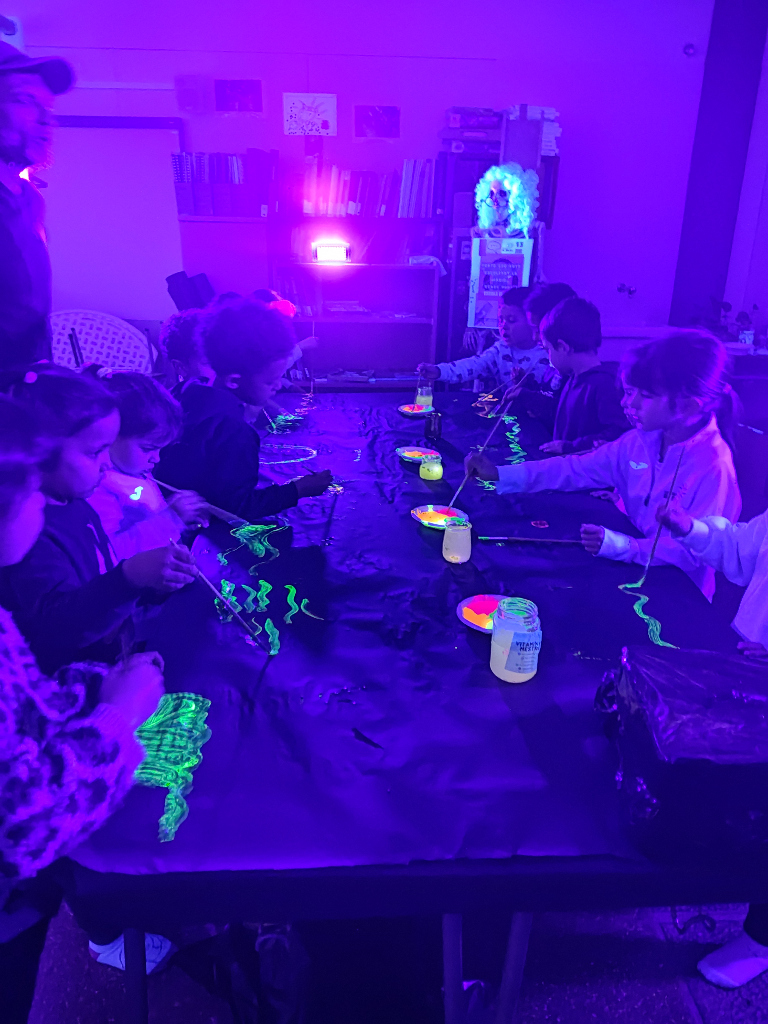 Durant la setmana de l’Eix Transversal hem realitzat un taller dirigit per un grafiter. Ens hem iniciat en el món del graffiti a través dels sentits i emocions, dibuixant amb retoladors fluorescents en una sala ambientada com si fos una aurora boreal: impressionant!