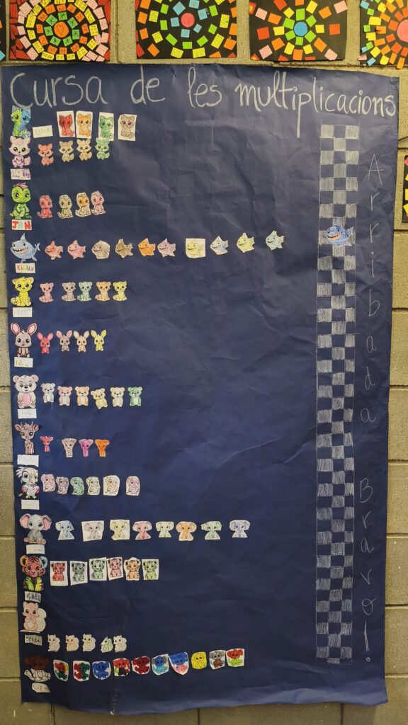 Per això, hem començat una cursa de les taules de multiplicar, per a què tots els nens i totes les nenes de les dues classes poguem arribar al final i ser guanyadors i guanyadores en saber les taules de multiplicar!
