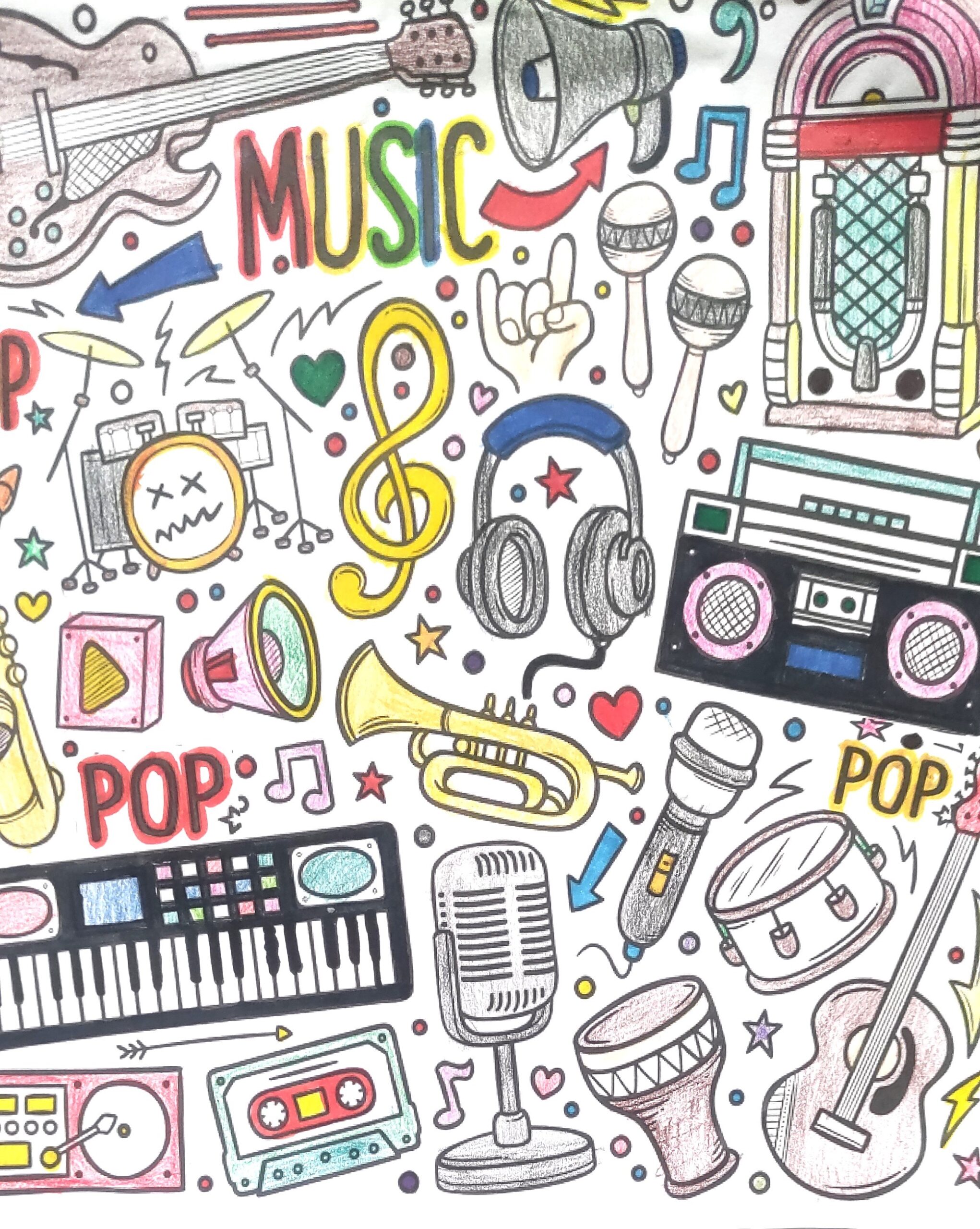 Les nenes i els nens de “La classe del Pop”, hem creat un mural relacionat amb la música per decorar el nostre passadís.