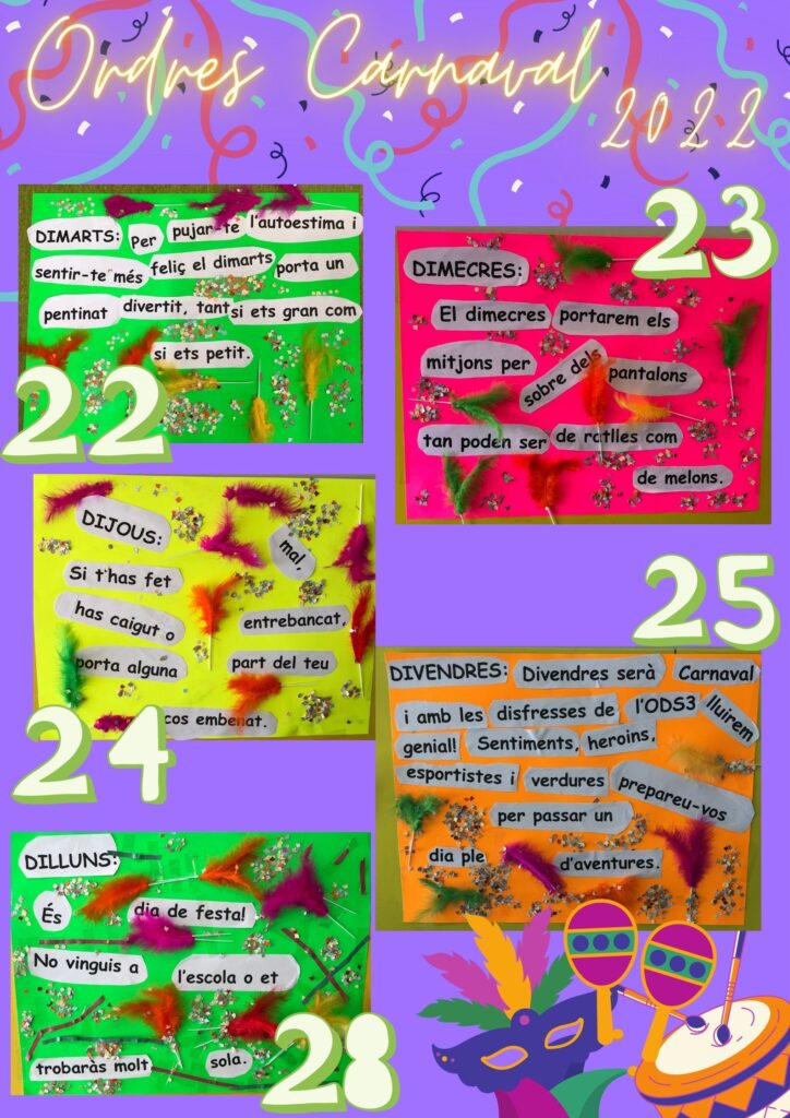 Circular Carnestoltes 2021 El dilluns a la tarda va arribar a l’escola …LA REINA CARNESTOLTES!!!! Aquest any, la Reina TERRA acompanyada dels nens i nenes de 3r i a ritme de “batukada” ens va dictar les ordres a seguir durant tota la setmana en un pregó genial! L’alumnat de 3 dirigits per l’Empar amb els