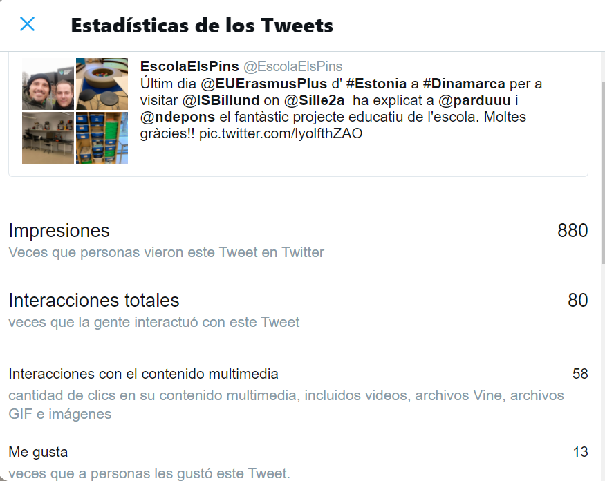 A continuació podeu veure el seguiment que han tingut els twits que hem fet durant les estades a Estònia i Croàcia en motiu dels Job Shadowing realitzats al projecte Erasmus+.