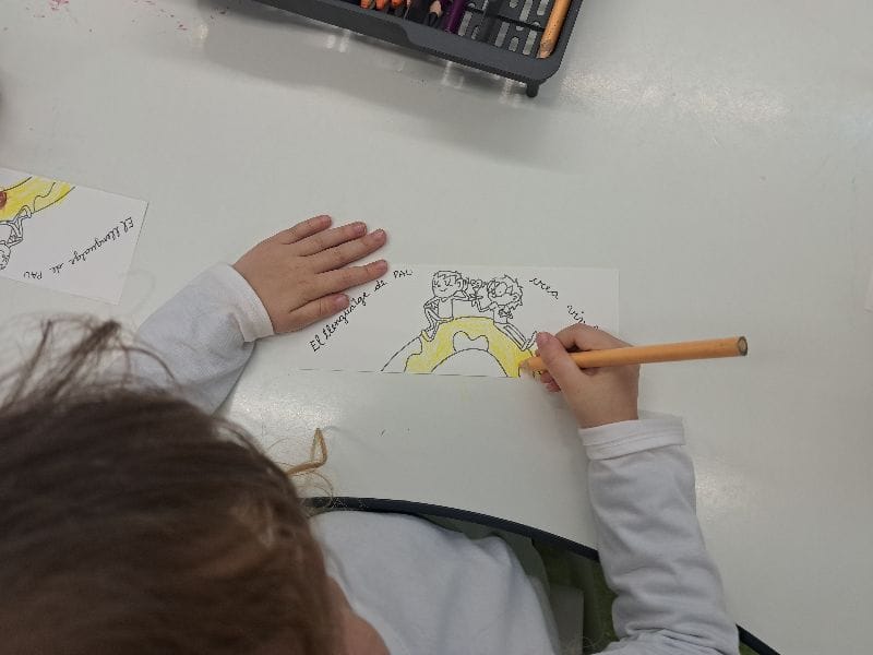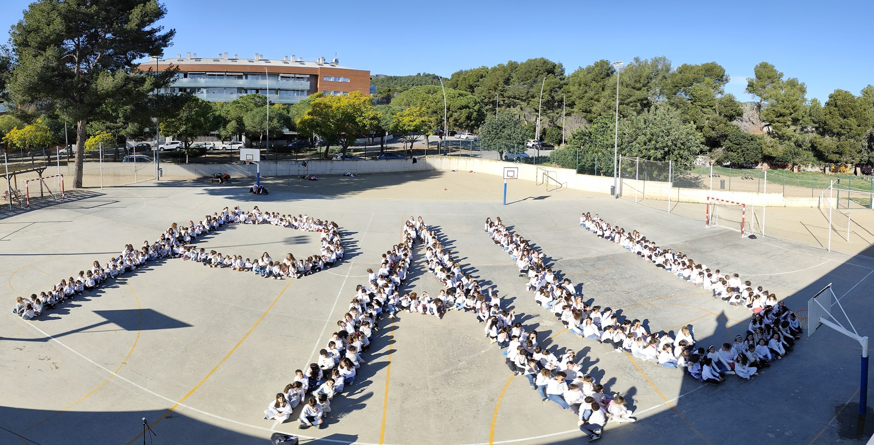 És per això que tots els nens i nenes de l’escola ens vam reunir per poder dibuixar sota el cel una de les paraules més boniques que hi ha:
