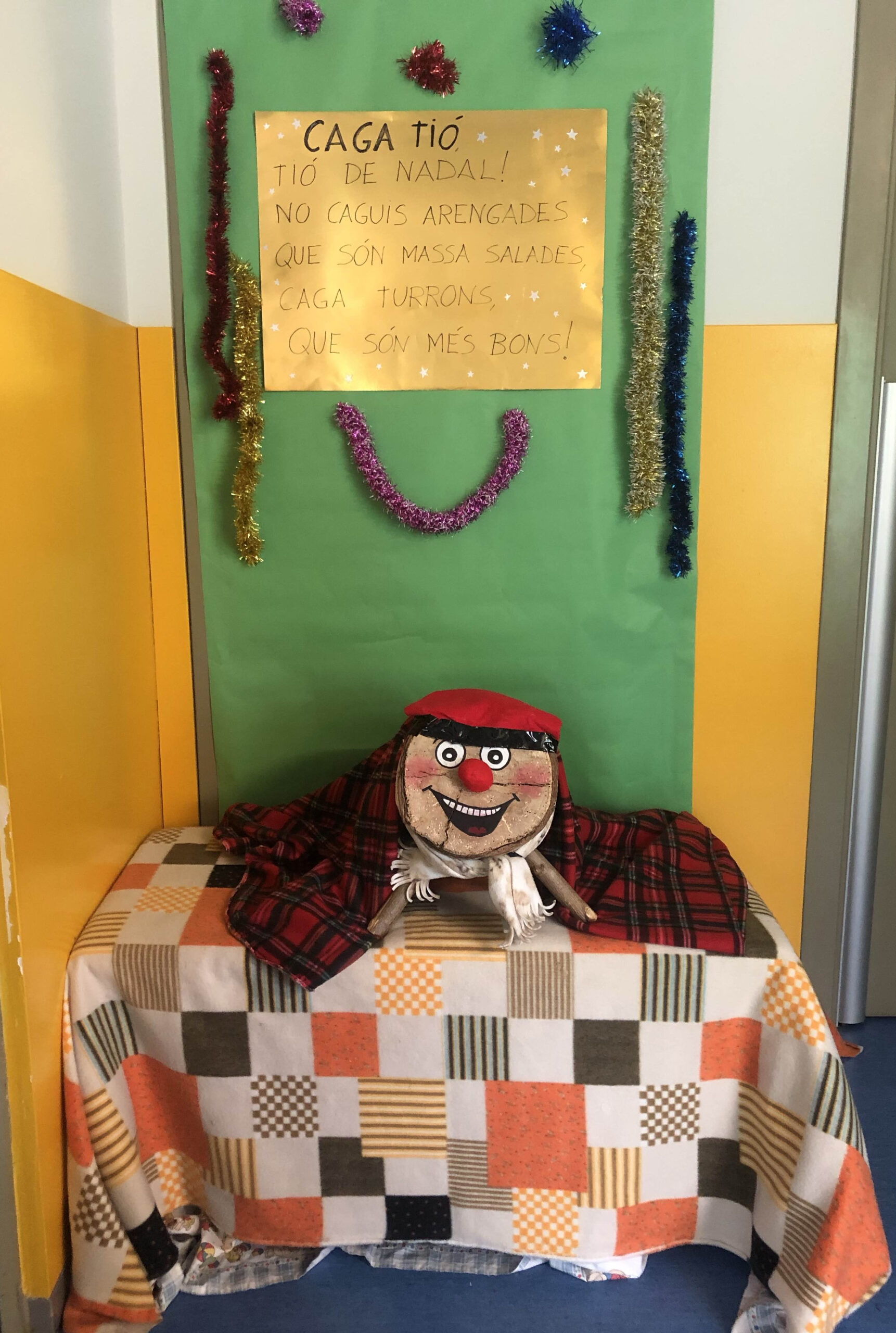 Fa dues setmanes el tió va arribar a l’escola. Els nens i les nenes d’educació infantil, l’hem estat cuidant, li hem donat molt de menjar. Avui, per fi, ha arribat el dia que tant esperàvem. Totes les classes, li hem recitat el nostre poema de Nadal i li hem cantat la cançó “caga tió”. El nostre tió estava tan agraït que ens ha cagat bombons, neules i torrons. Gràcies tió!!!