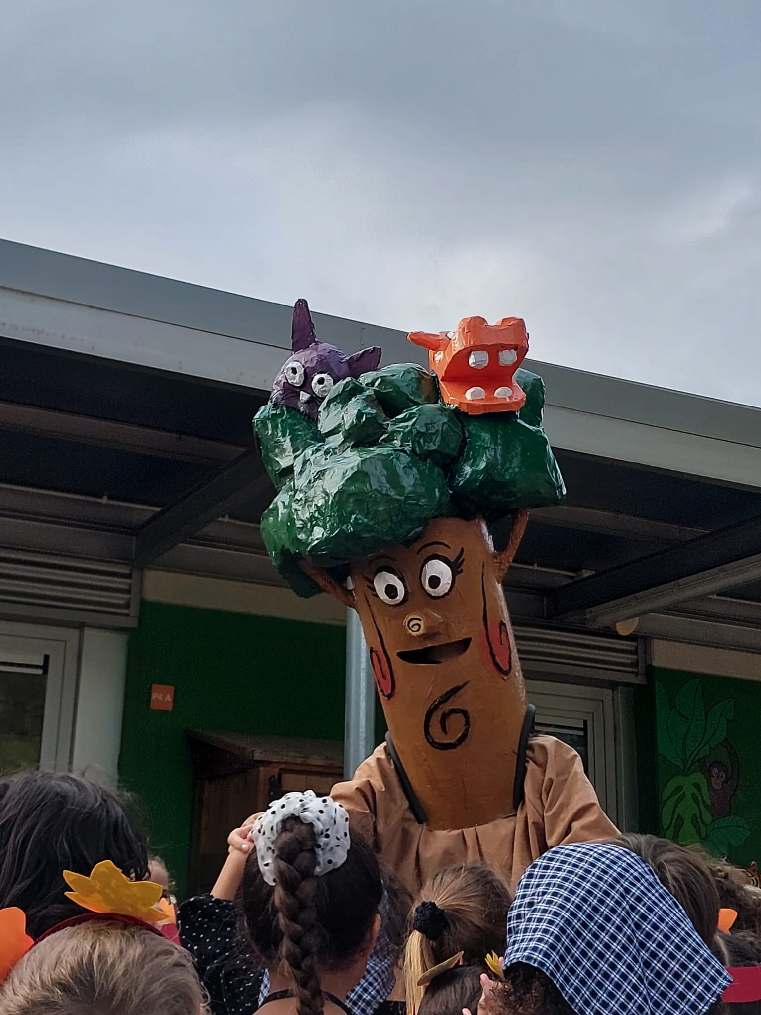 A la tarda, també ens va venir a visitar la nova capgrossa de l’escola: la Pineta! Va ser un dia extraordinari ple de música, somriures, festa i castanyes.